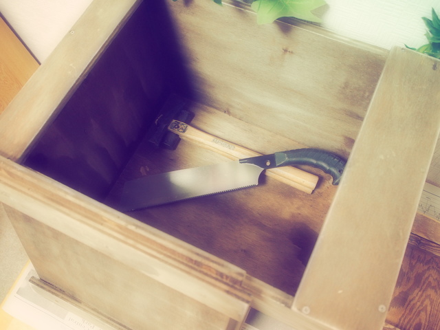 室内においてかさばるの物を収納してもよし、庭先においてインテリア兼工具入として使ってもよし。